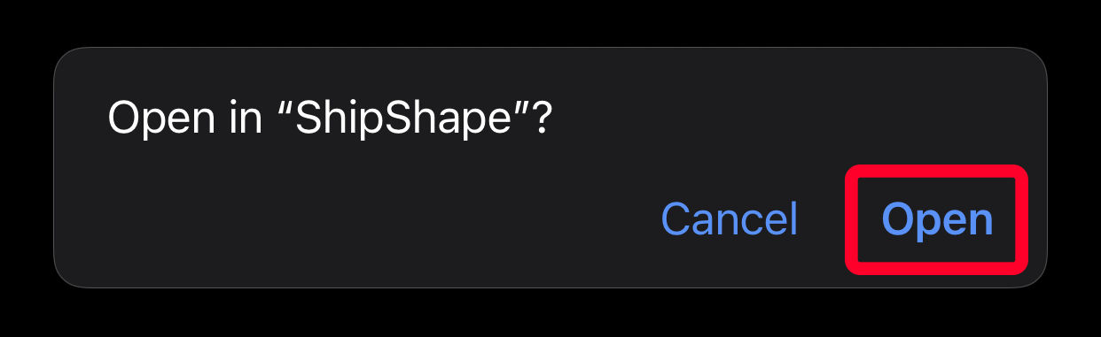 A pop up may appear asking you if you'd like to follow the link into the Shipshape app. Tap "Open" to automatically switch over to the correct app screen to continue the process.