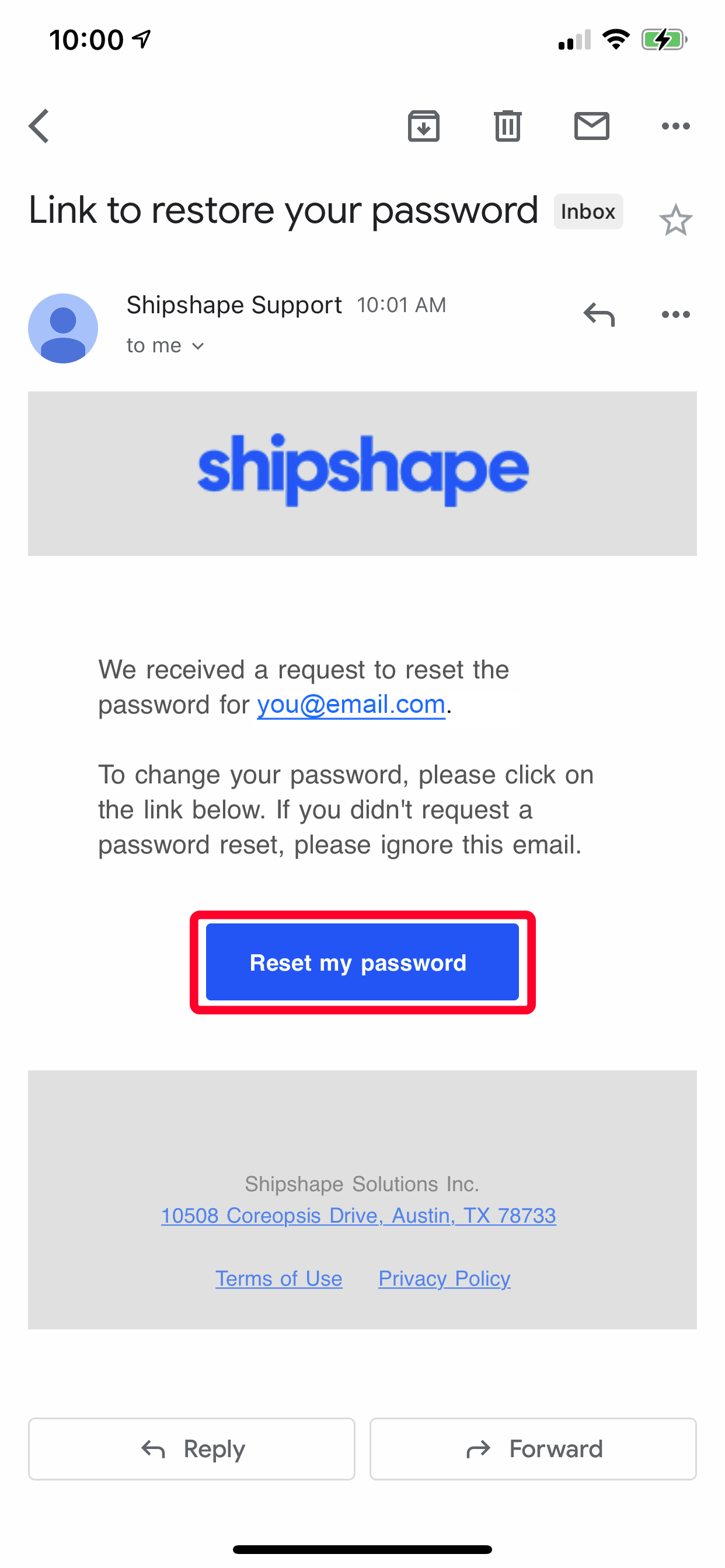 Welcome to Shipshape! Let's take a moment to reset your password.